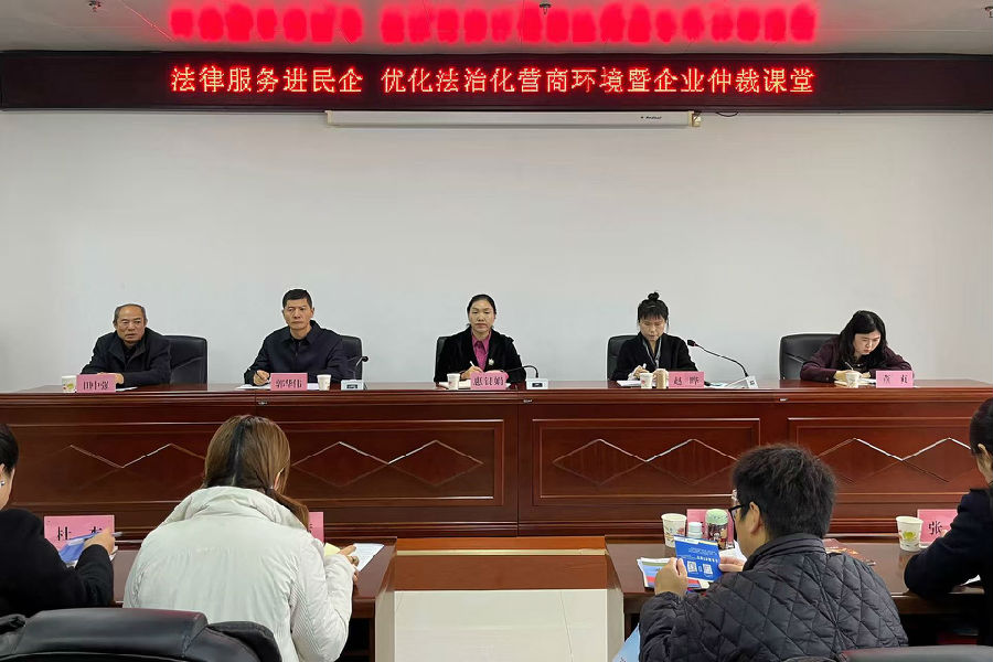活動(dòng)中,渭南仲裁委員會(huì)圍繞新修訂的《仲裁法》進(jìn)行專題授課,通過典型案例分析,詳細(xì)闡述了仲裁在解決商事糾紛中體現(xiàn)的高效、保密、專業(yè)等優(yōu)勢(shì),并就仲裁程序要點(diǎn)進(jìn)行了實(shí)務(wù)講解。在交流環(huán)節(jié),渭南仲裁委與區(qū)公證處、法律援助中心等工作人員現(xiàn)場(chǎng)解答了企業(yè)代表提出的相關(guān)問題。